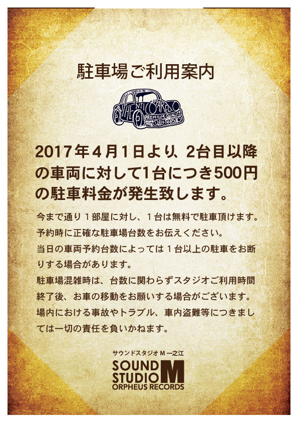 サウンドスタジオM一之江店 駐車場ご利用に関するお知らせ